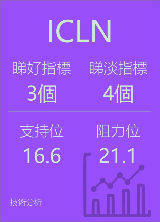 美股个股指标分析-$iSharesS&PGlobalCleanEnergy(ICLN)$看好指标3个,看淡指标4个。支持位16.6,阻力21.1,仅供参考。相关证券:iSharesS&PGlobalCleanEnergy(ICLN)