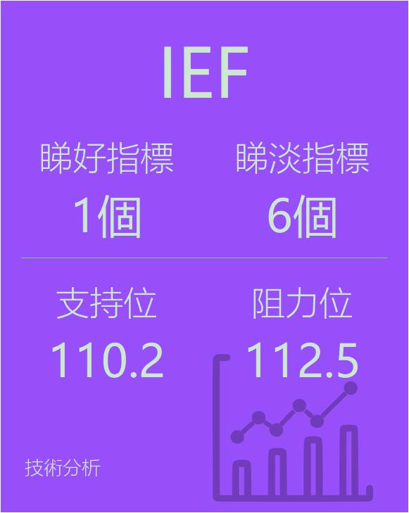 美股个股指标分析-债券指数ETF-iSharesBarclays7-10年(IEF)看好指标1个,看淡指标6个。支持位110.2,阻力位112.5,仅供参考。相关证券:7-10年ETF-iShares(IEF)