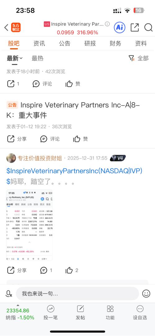 $InspireVeterinaryPartnersInc(NASDAQ|IVP)$妈耶,踏空了。。。。