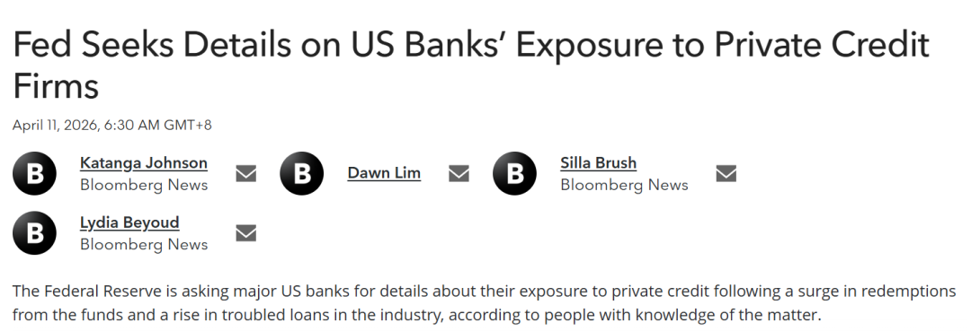 据彭博社报道,有知情人士表示,随着私募信贷基金赎回激增、行业问题贷款增多,美联储正要求美国各大银行详细说明其对私募信贷的风险敞口情况。 (图/彭博社) 进一步来讲,美联储检查人员此举旨在评估私募信贷行业的压力水平,及其向更广泛金融体系蔓延的可能性。 在纳入日常监管流程的问询事项中,美联储关注着私募信贷基金从银行获得的债务融资情况。市场景气时,这类行动可以放大回报,提升私募信贷基金吸引力;在不利市场...