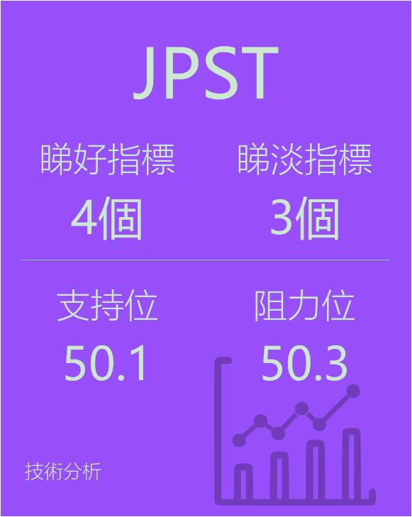 美股个股指标分析-$JPMorganUltra-ShortIncomeETF(AMEX|JPST)$看好指标1个,看淡指标5个。支持50.1,阻力50.3,仅供参考。