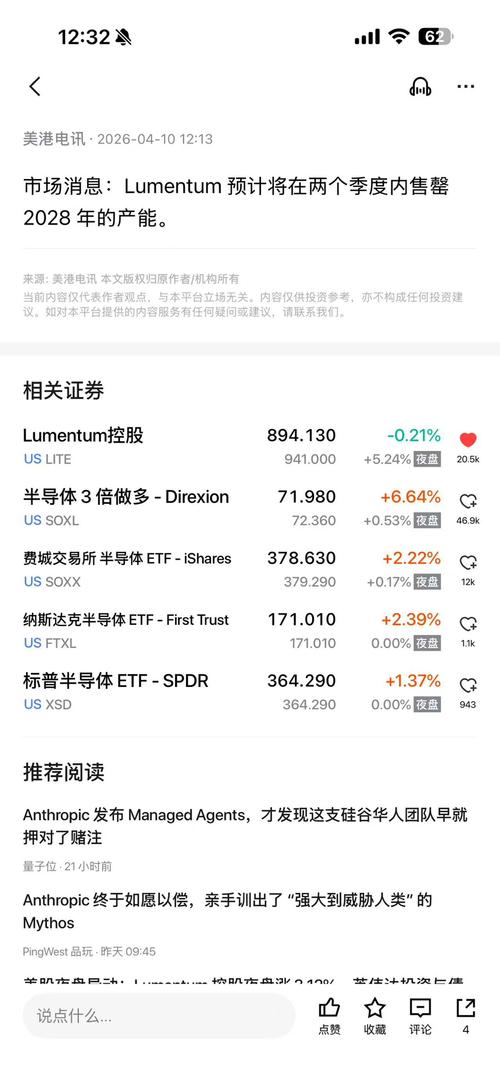 4月10日|美国光通信龙头Lumentum预计2028年的产能将在两个季度内售罄。