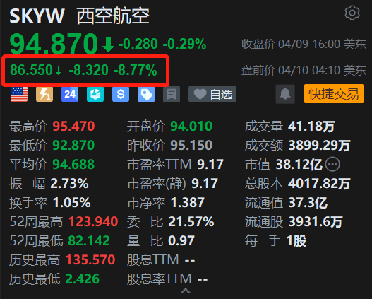 西南航空(LUV.US)盘前大跌近9%报86.55美元。消息上,西南航空宣布,从4月9日起,第一件和第二件托运行李费各上调10美元。这打破了它过去赖以吸引顾客的“免费行李”招牌,很可能会影响乘客的选择,并拖累它的品牌形象。