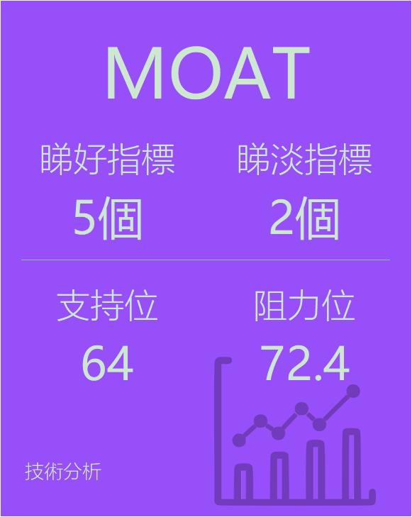 美股个股指标分析-$VanEckMorningstarWideMoatET(AMEXMOAT)$看好指标5个,看淡指标2个。支持位64,阻力72.4,仅供参考。