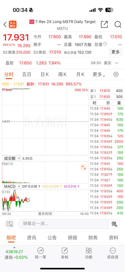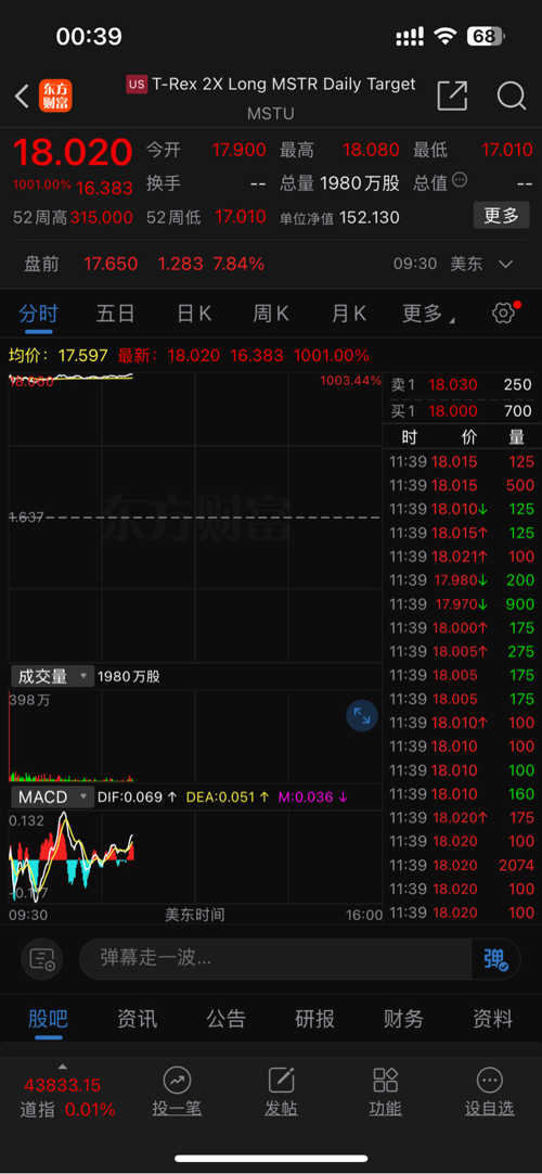 $二倍做多MSTRETF-T-Rex(AMEX|MSTU)$买这个股翻倍和腰斩好像都在一瞬间