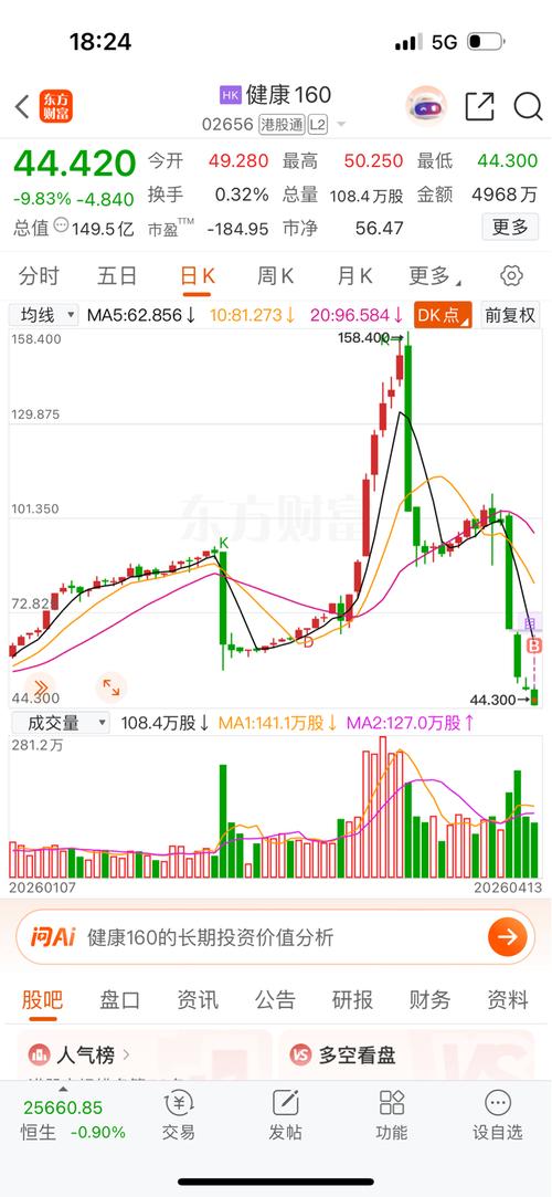 $美光科技(NASDAQ|MU)$$特斯拉(NASDAQ|TSLA)$$健康160(HK|02656)$抓紧进场吃肉了,只有100/10流通盘,还没有赚钱的,港股通人数又不多只有1%,套牢位在100元左右,估计卖的人也不会多,纯情绪砸下来的