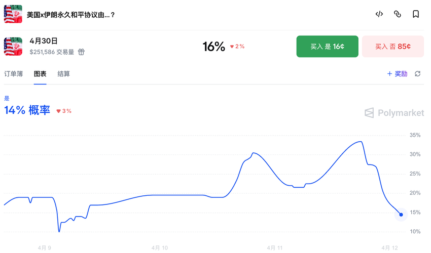 周末的美伊谈判不出意外的再次出了意外,双方不欢而散没有达成任何协议,与此同时美方宣布今晚十点开始封锁霍尔木兹海峡,如此一来船只给伊朗交过路费都出不去了,川普这招釜底抽薪导致国际原油价格大幅跳涨,布伦特原油期货价格一度突破102美元/桶。而链上4月份达成协议的概率也从接近35%下降到了14%。 随着市场预期的落空,股市也再一次跳空下跌,早盘纳斯达克100期指一度下跌1.4%,市场反应还是有点剧烈,昨...