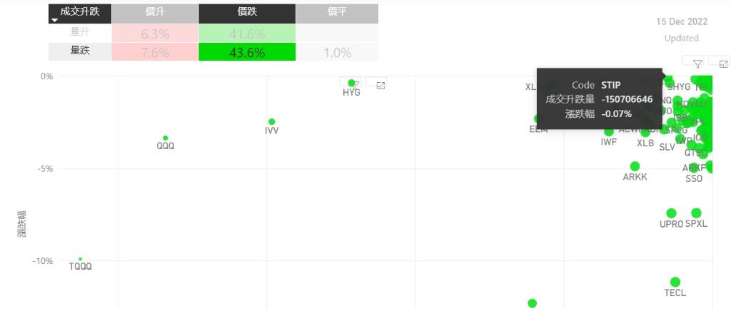在12月15日的美股主要300只ETF交易品种中,录得有14%的ETF交易品种的ETF价格上升;尽管录得过半数的ETF价格录得上升,不过仍有8%的ETF产品,虽然价格上升,成交额却下跌。在价升量跌的ETF当中,其中$油气开采ETF-SPDRS&P(AMEXXOP)$升幅最大,录得0.42%升幅;其次为SPTL,录得0.42%。SCHZ录得0.21%的升幅,属於价升量跌的ETF当中,排名第三。如...