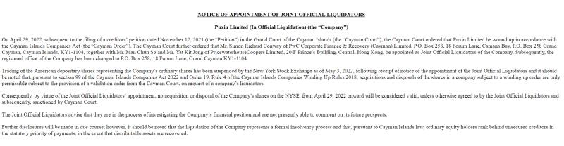 蓝鲸教育5月11日讯,昨日晚间,朴新教育发布联席清算人委任通知,披露已经向开曼法院提交债权请愿书以进行清算。对此,朴新教育对蓝鲸教育回应表示,所谓朴新破产的解读并不准确。昨日晚间,朴新教育发布公告显示,开曼法院下令将PuxinLimited根据开曼群岛公司法清盘(WindUp)。普华永道获委任为联席法定清盘人。纽交所在收到任命联合官方清算人的通知后,暂停了代表公司普通股的美国存托股份的交易。...
