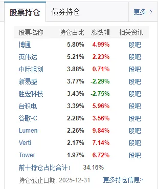 昨天晚上,随着QDII的净值更新,基少持仓基金中,天弘全球高端制造混合C(016665)单日净值上涨10.15%,太猛啦!定投团的纳指单车,也投了这只基金,跟投的网友都分享到这次10CM+。是什么原因让这只基金这么生猛?目前该基金的一季报尚未发布,只能根据基金的25年四季报分析。该基金A股配置比例49%,美股36%,日股7%,港股2%,合计93%;行业上,信息技术73%,工业17%,电信2%,基础...