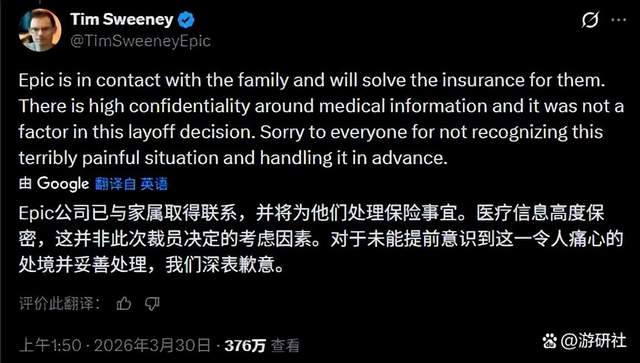 2026年,无疑是公认的游戏大年。 但在行业盛世的表象之下,一股隐秘而汹涌的暗流,正悄然席卷整个产业。 3月24日,行业巨头EpicGames向全员发送内部邮件,宣布裁员超千人,规模占其全球员工总数的16%至20%。 公司CEO蒂姆·斯威尼为裁员中的癌症晚期患者道歉 几乎同一时间,微软Xbox也迎来剧烈人事震荡,两位核心高管相继官宣离职:Xbox游戏AI总经理张海燕将转战...