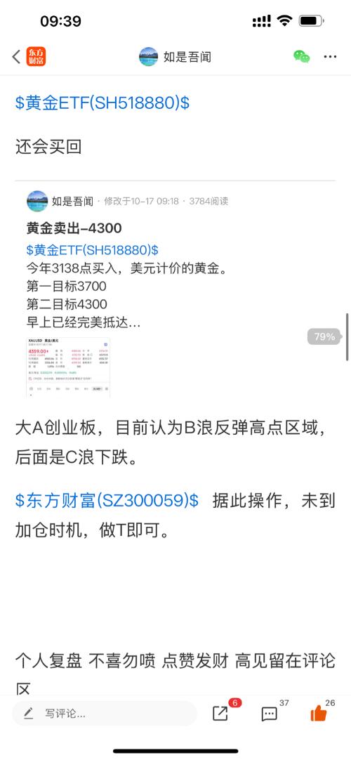长期跟踪操作的6个标的 买和卖都在发 10月收获10%浮赢 全年来到90% 已经发了好几个帖子 持续卖出 守住今年的盈利为主 操作上,4300卖了黄金,124400卖了大饼,195卖了30%英伟达,这三笔操作让我们今年入账200w+,盈利发过好几次,下附录卖出操作截图。 $黄金ETF(SH518880)$$英伟达(NASDAQ|NVDA)$ 创业板B反摸顶开启C杀,观点未变,东财未到加仓时机$东方财富(SZ300059)$...