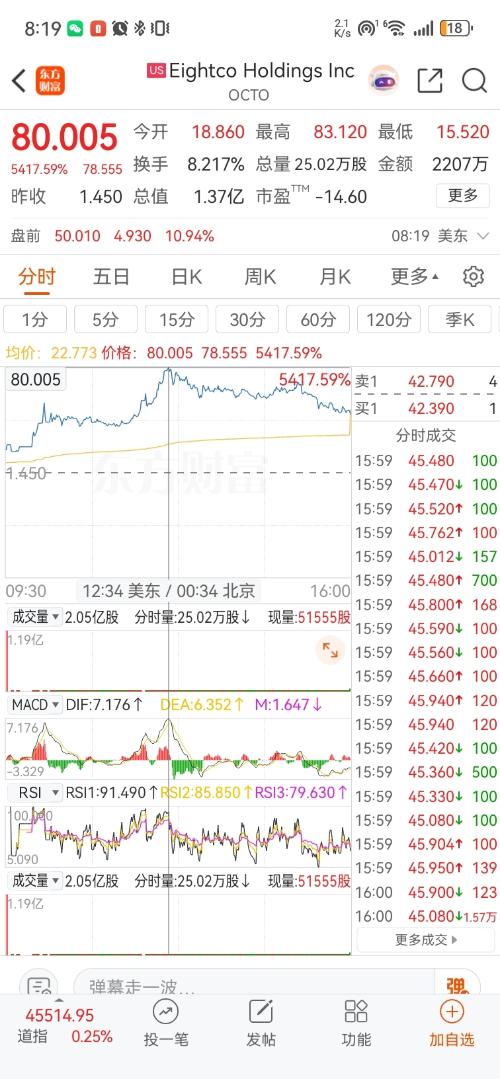 $EightcoHoldingsInc(NASDAQ|OCTO)$昨晚一夜有多少人发达了??