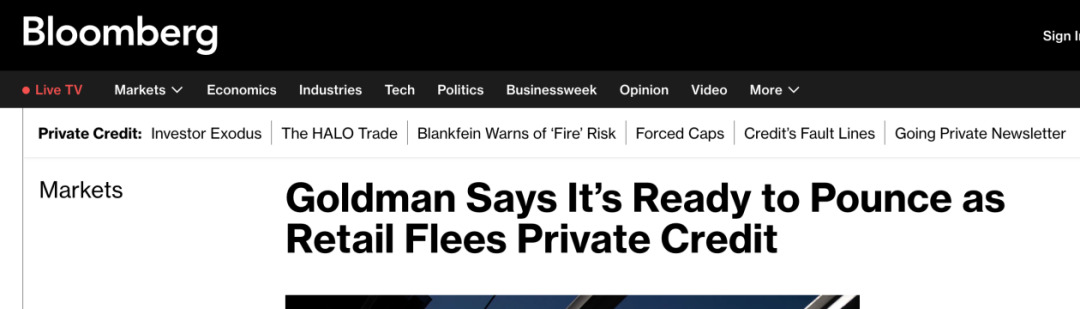 外媒:高盛称已准备好在散户逃离私人信贷时出击