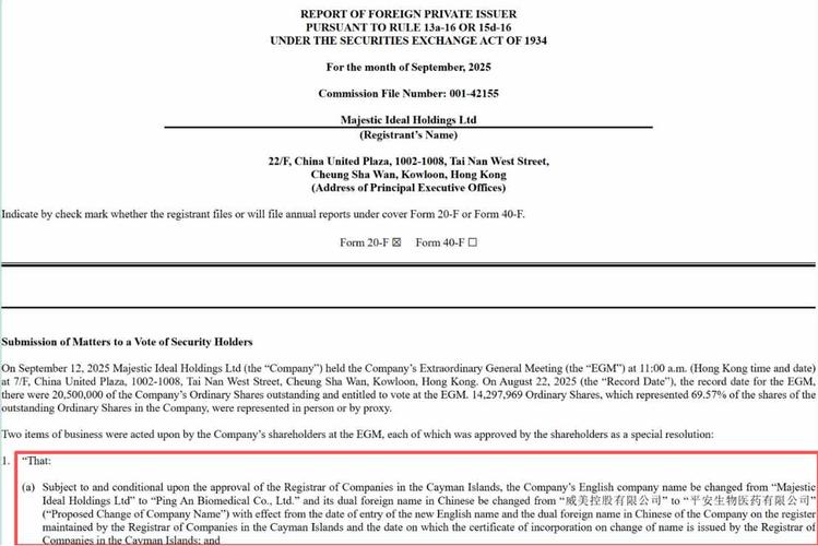 公告 平安生物医药|6-K:重大事件