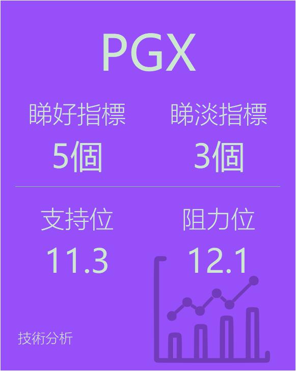 美股个股指标分析-$优先股ETF-PowerShares(AMEX|PGX)$看好指标5个,看淡指标3个。支持11.3,阻力12.1,仅供参考。