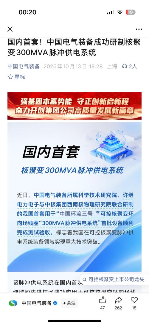 $PowellMaxLtd-A(NASDAQ|PMAX)$国内首套!中国电气装备成功研制核聚变300MVA脉冲供电系统!重大突破!