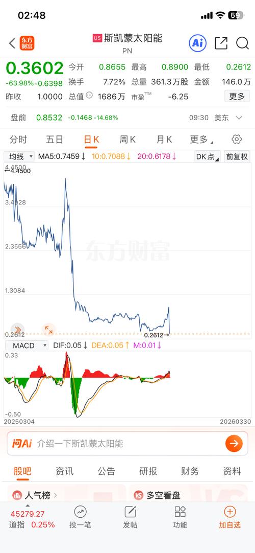 $斯凯蒙太阳能(NASDAQ|PN)$71万就能大涨,这没有量化就这么冷清,要是在A,它能对倒出7千万