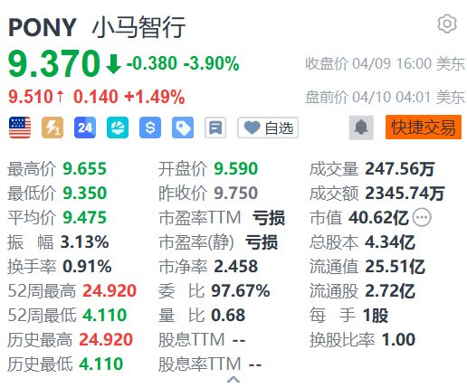 美股异动|小马智行盘前涨超1% 发布PonyWorld世界模型2.0