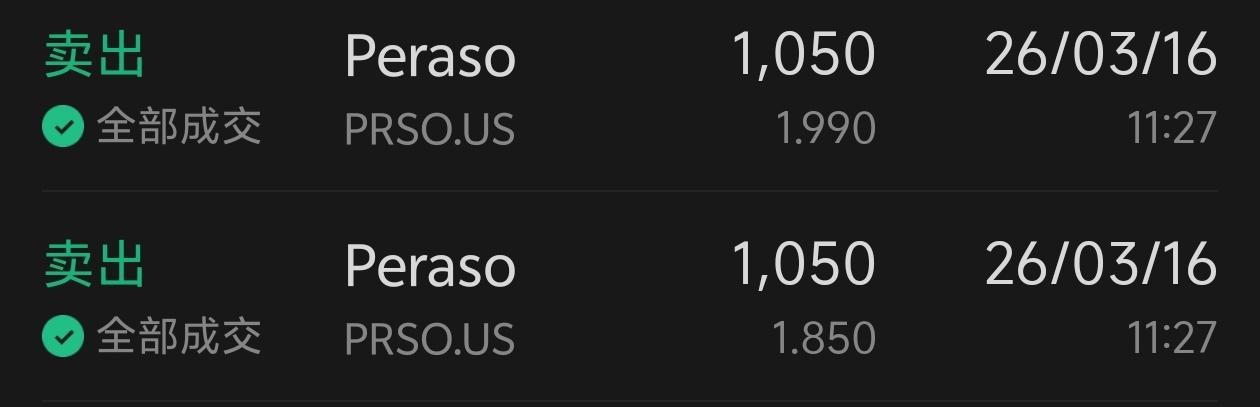 $PerasoInc(NASDAQ|PRSO)$还好1.85和1.99分批卖出了,现在跌到1.29不然要亏成孙子了