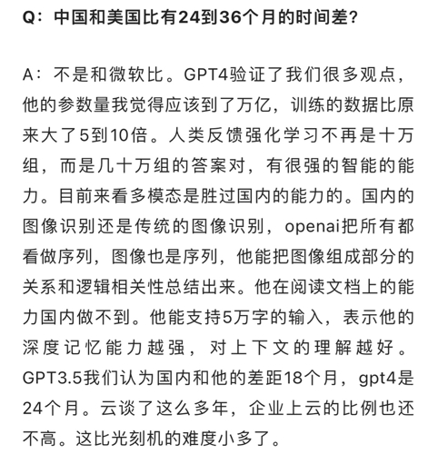 感觉周鸿祎老师说话从未有那么多人认真解读过,直接把平台干崩了“我们离GPT还有24个月到36个月的差距,第一个版本能做到几百亿参数的模型的时候,做到GPT的六成的功力,做到企业内部是够用了。TOB和TOG端是有大量的机会的。面对中小企业端,我们打算推出生成式AI的办公套件和应用。”问题是GPT3.5到GPT-4只花了三个月,24个月到36个月,是不是都到GPT-12了?$360数科(NASDAQ|QFIN)$...