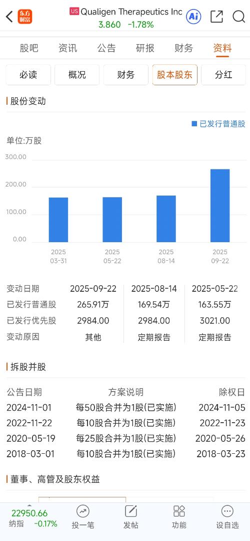 $QualigenTherapeuticsInc(NASDAQ|QLGN)$$法拉第未来(NASDAQ|FFAI)$ 老贾宣布投资以来,总股本已经基本翻倍,和法拉第未来一模一样的套路,恭喜此股股东步ff后尘。 看看再次腰斩需不需要3个月