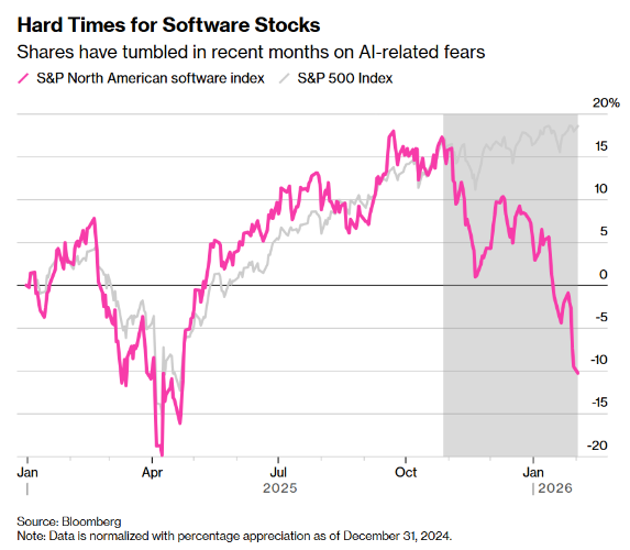 资讯 美股收盘:三大指数集体收跌 “AI抢饭碗”引发软件股抛售