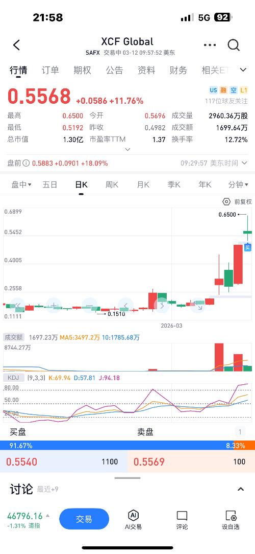 $XCFGlobalInc-A(NASDAQ|SAFX)$ #收盘点评#起飞了,宝贝们