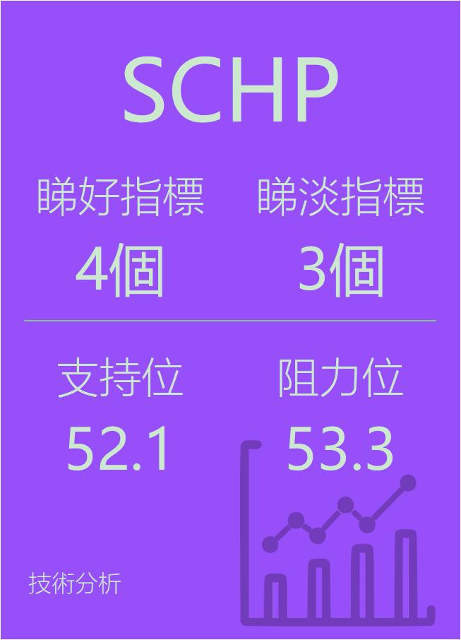 美股个股指标分析-$美国抗通胀债ETF-Schwab(AMEX|SCHP)$看好指标4个,看淡指标3个。支持52.1,阻力53.3,仅供参考。