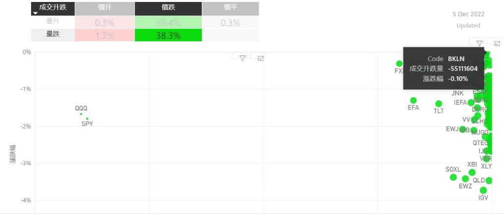在12月5日的美股主要300只ETF交易品种中,录得有2%的ETF交易品种的ETF价格上升;尽管录得只有少数的ETF价格录得上升,不过仍有1.7%的ETF产品,虽然价格上升,成交额却下跌。在价升量跌的ETF当中,其中FTSM升幅最大,录得0.03%升幅;其次为MINT,录得0.03%。SUB录得0.02%的升幅,属於价升量跌的ETF当中,排名第三。如果考虑部署短期追升ETF,可以考虑以下品种,比...