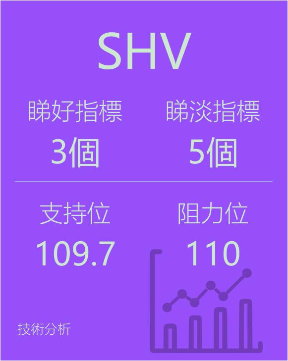 美股个股指标分析-$短期国债ETF-iShares(NASDAQ|SHV)$看好指标3个,看淡指标4个。支持110,阻力110.5,仅供参考。