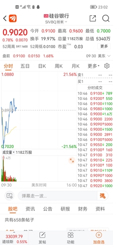 $硅谷银行(NASDAQ|SIVB)$涨到9毛钱了