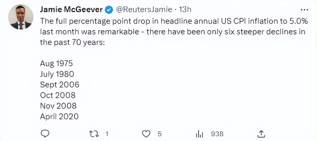 4月12日,美国3月通胀数据CPI出炉。同日,美联储公布3月货币政策会议纪要。这两大重磅宏观消息挤到了同一天发布,时间线上,CPI在美股盘前发布,而货币政策会议纪要在盘中发布。这样一个“宏观大日子”,美股在日内走出了“虎头蛇尾”的走势,究竟发生了什么?01、CPI继续下行但通胀仍过高美国3月CPI同比5.0%,比起市场预期的5.2%要更好,较上月6.0%下降了1个百分点。这也是CPI自2021年...