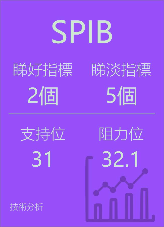 美股个股指标分析-$SPDRPortfolioIntermediateTermCorporateBondETF(SPIB)$看好指标2个,看淡指标5个。支持位31,阻力32.1,仅供参考。相关证券:SPDRPortfolioIntermediateTer(SPIB)