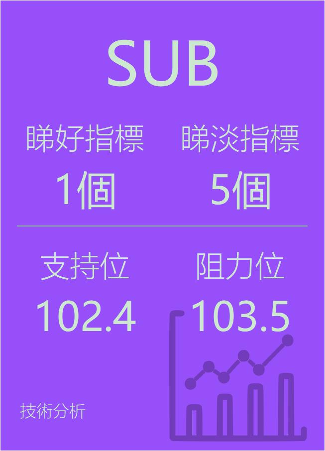 美股个股指标分析-$iSharesS&PShortTermNational(SUB)$看好指标1个,看淡指标5个。支持位102.4,阻力103.5,仅供参考。相关证券:iSharesShort-TermNationalMun(SUB)