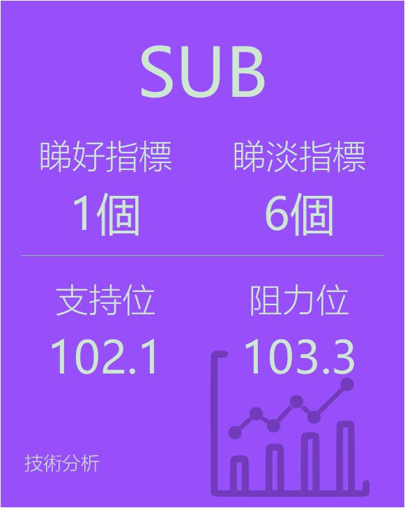 美股个股指标分析-iSharesS&PShortTermNational(SUB)看好指标1个,看淡指标6个。支持位102.1,阻力103.3,仅供参考。相关证券:iSharesShort-TermNationalMun(SUB)