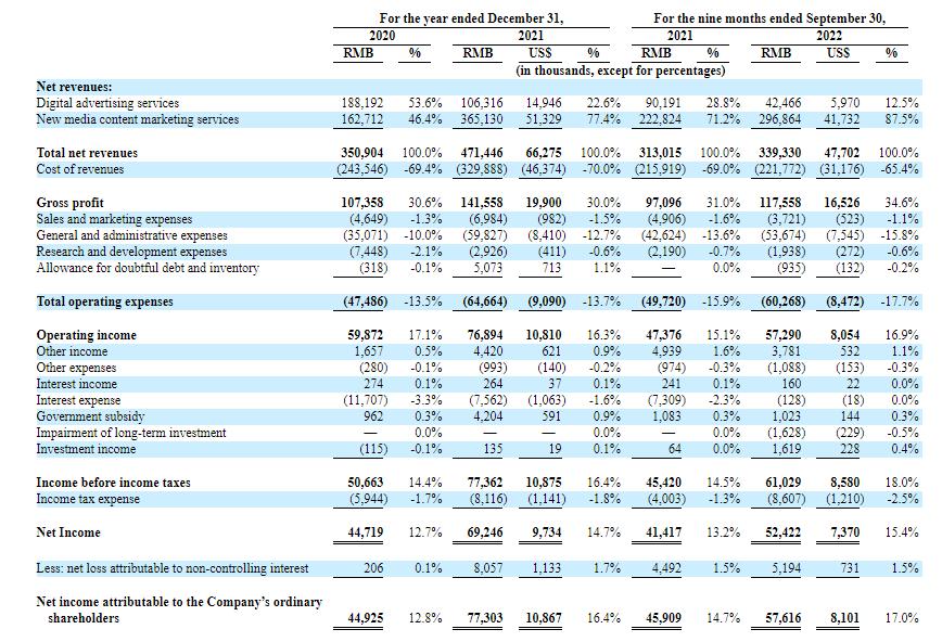【旭航集团拟纳斯达克上市】3月31日,旭航集团向美国证监会递交招股书,拟以股票代码“SUNH”在纳斯达克上市。旭航集团通过中国子公司提供新媒体综合内容营销服务和数字广告服务。2022年前九个月,该公司总净营收为3.39亿元,净利润5242.2万元。2022年前九个月,数字广告服务的营收占比为12.5%,新媒体综合内容营销服务营收占比为87.5%。(界面)