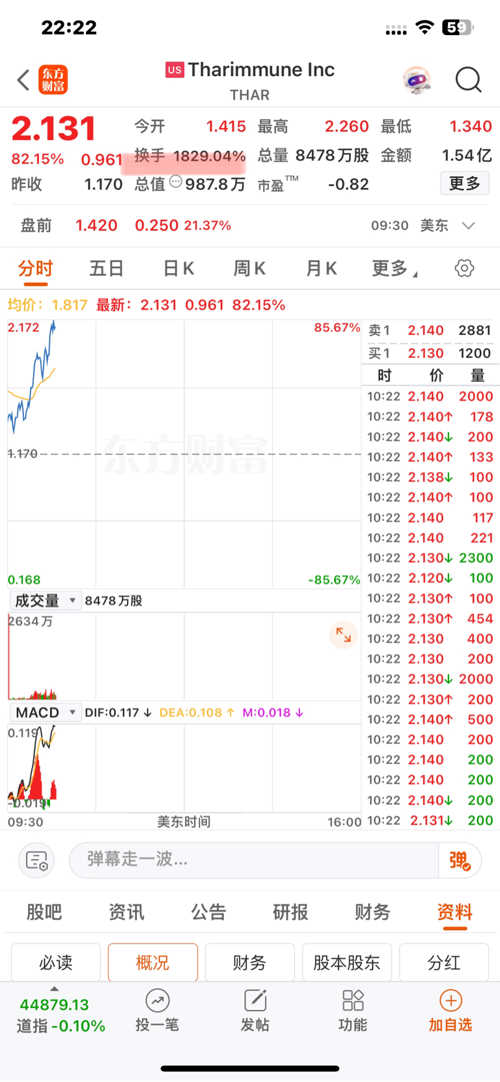 $TharimmuneInc(NASDAQ|THAR)$换手率1829%