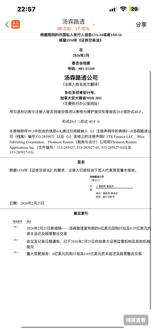公告 汤森路透|40-F:年度报告(加拿大发行人)