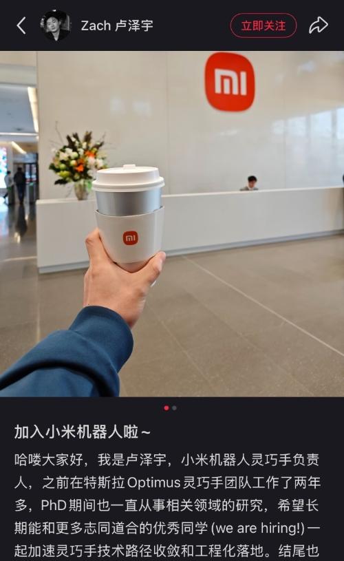 小米又挖人了!这次挖来的大神堪称世界级!但奇怪的是,这一次大家都没有骂雷总了!这到底是什么回事,我一起看看! 11月26日,界面新闻透露,前特斯拉“擎天柱”机器人灵巧手团队成员卢泽宇,他自宣正式入职小米,并担任小米机器人灵巧手负责人。 在个人媒体上,卢泽宇确认了入职小米的消息,并确表示将带领团队加速灵巧手技术的“落地”,同时为小米公开招募机器人领域技术人才加入。 要知道,早在2020年小米就开始布...