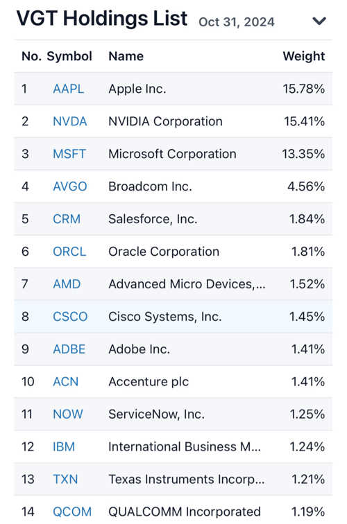 $信息科技指数ETF-Vanguard(AMEX|VGT)$这个不行啊,苹果持仓比例太高了