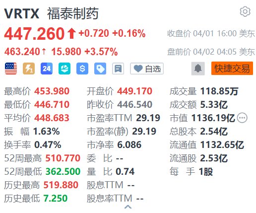 美股异动 | 福泰制药盘前涨超3% 美国FDA批准Alyftrek和Trikafta的标签扩展