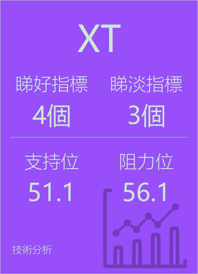 美股个股指标分析-$iSharesExponentialTechnologie(NASDAQ|XT)$看好指标4个,看淡指标3个。支持位51.1,阻力56.1,仅供参考。
