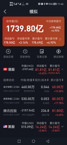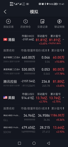 模拟炒股可以有无限子弹。就是就是好啊,可以体验马斯克的感觉。随随便便就是多少个小目标。$三倍做空FTSE中国ETF-Direxion(AMEX|YANG)$$道琼斯(QQZS|DJIA)$$二倍做空日元ETF-ProShares(AMEX|YCS)$