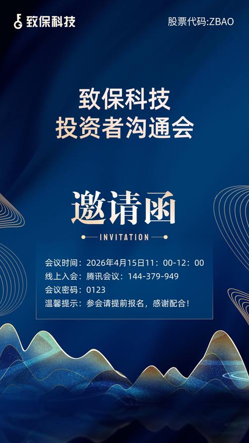 致保科技邀请您参加腾讯会议 会议主题:致保科技投资者沟通会 会议时间:2026/04/1511:00-12:00(GMT+08:00)中国标准时间-北京 该会议开启了报名功能,请点击链接报名后入会: https://meeting.tencent.com/dm/OqSmNLnWnjzx #腾讯会议:144-379-949 会议密码:0123 复制该信息,打开手机腾讯会议即可参与