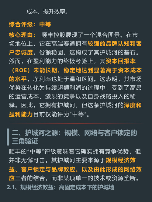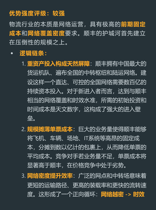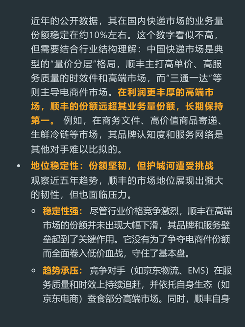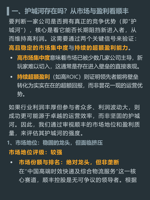 $顺丰控股(SZ002352)$$中通快递(NYSE|ZTO)$$圆通速递(SH600233)$你有没有好奇过,所有人都认顺丰的服务好,为什么它的股价一直没体现出“垄断级龙头”的溢价?核心答案是,顺丰确实有护城河,但宽度和盈利能力只能算中等。 它的市场地位是真的稳,全行业10%左右的业务量份额看着不高,其实是它根本没掺和电商件的价格战,所有高利润的高端赛道,不管是商务文件、高价值商品寄递还是生鲜冷...