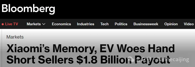 小米股价半年下跌超40%,美媒曝空头狂赚18亿美金