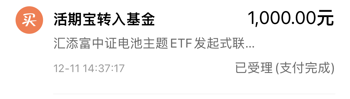 招财宝们,补充一个操作,买1000$汇添富中证电池主题ETF发起式联接$,这支是跟踪中证电池指数的,连跌之后看走势处于非常低的位置,随时有反弹动能。最近碳酸锂期货很热闹,剧情跌宕起伏,先是连续跌停,随后反转,前两个交易日再连续涨停。对应的,锂电池板块也出现反弹,碳酸锂期权甚至出现上百倍涨幅。但今天涨停开盘又翻绿跌5%,出现这么大的波动,大概率是市场分歧严重。具体来说,锂电股前面跌太多了,大部分公...