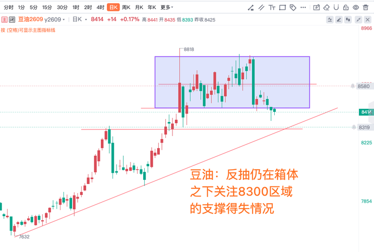 豆油:反抽仍在箱体之下关注8300区域的支撑得失情况