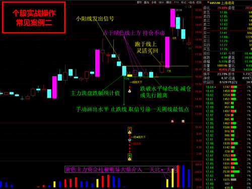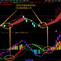 V1:=(C*2+H+L)/4*10;V2:=EMA(V1,13)-EMA(V1,34);V3:=EMA(V2,5);V4:=2*(V2-V3)*5.5;主力撤:IF(V4<=0,V4,0),COLORBLUE;主力进:IF(V4>=0,V4,0),COLORFF00FF;V5:=(HHV(INDEXH,8)-INDEXC)/(HHV(INDEXH,8)-LLV(INDEXL,8))*8...